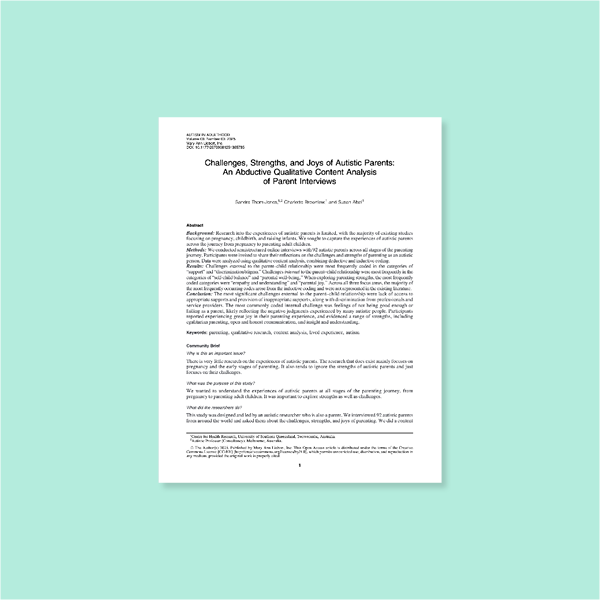 Challenges, Strengths, And Joys Of Autistic Parents: An Abductive Qualitative Content Analysis Of Parent Interviews